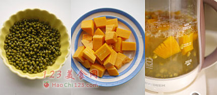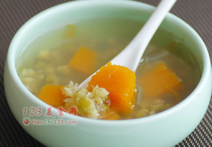 2、绿豆与南瓜两者同煮汤中多了南瓜的甘甜,味道很不错。生津益气,夏季必备的消暑饮料。[sushi.laoyanhuo.com]