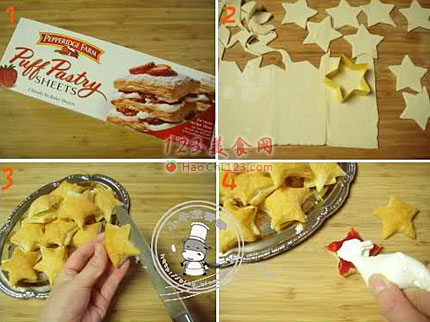 2、小心取出,用饼干模具刻出五角星,华氏385度(摄氏196度)烤10-15分钟。