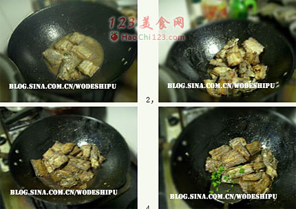 3、带入酱油、料酒和红糖,还有清水少许,上色和调味(婆婆的上色和调味和我的烧带鱼的方法不同,我不用再度盛起,将油倒出,这样的会汤水的油分会很多,看上去也很油腻,而且还浪费油呢)。