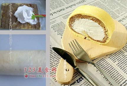 13、用油纸卷好蛋糕卷定型。