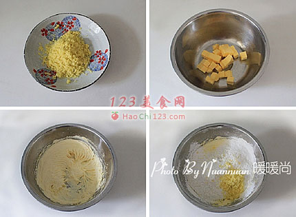 5、用橡皮刮刀将面粉与黄油充分压拌均匀成团,放入保鲜袋中冷藏约30分钟。