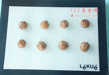 5、手上沾点干粉,捏起一块面糊,搓成圆球形。