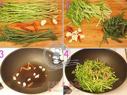 4、这两种蔬菜都很容易熟,所以炒制的时间不要太长。