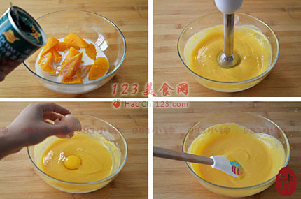 7、8、再加入一个鸡蛋打匀做成浓稠的红薯椰浆糊。
