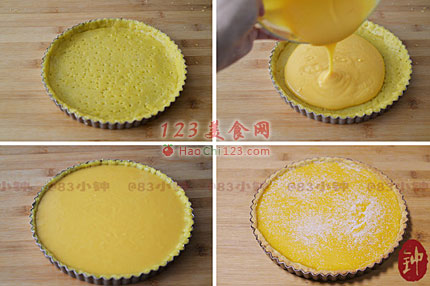 11、放入预热好的烤箱中,200度烤10分钟,然后将烤箱温度调至170度,继续烘烤25分钟,至馅料完全凝固即可。