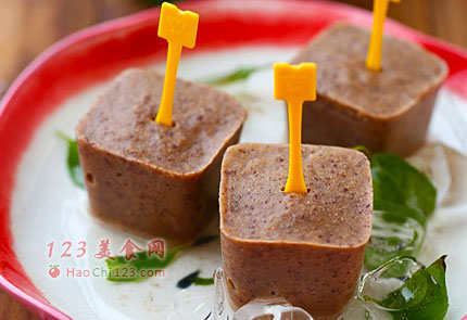 6、熄火,待五谷糊晾凉后分倒入模具,放入冰箱冷冻凝固即可。