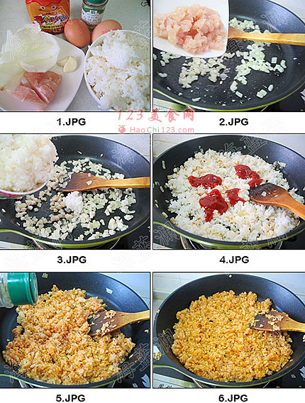 2、油锅加热后爆香蒜末和洋葱碎,加入鸡丁炒拌均匀。