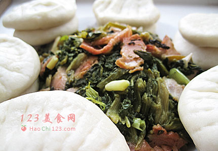 二、培根万年青菜干做法: