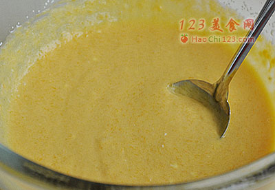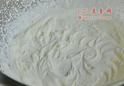 5、将打发好的奶油和步骤3中的果泥混合、拌匀。