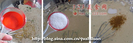 4、加适量盐(我加的一小勺,真的有些咸了,少点吧),喜欢吃五香味的可以加五香粉,喜欢吃孜然味的可以加少许孜然粉,看自己喜欢了,然后搅拌均匀。
