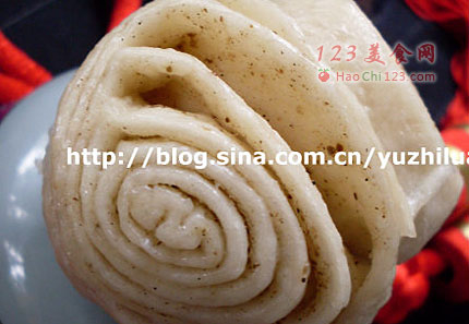 8、锅里放凉水,将做好的花卷放在笼屉上,开火蒸就好了,水开以后大概再蒸上10分钟左右(蒸的时间依大小而定,大的可以将时间延长一些,我做的那个比较小,就蒸了10分钟)。[sushi.laoyanhuo.com]