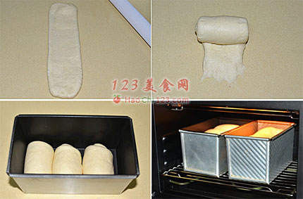 13、收口捏紧朝下放入吐司模中。