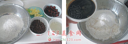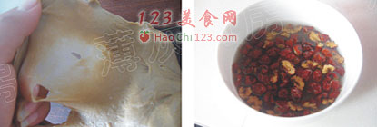5、将水浸泡过的红枣干挤干水份。