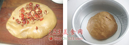 6、将葡萄干揉入面团内。