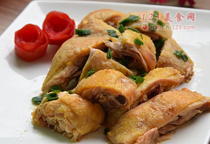 5、煮好后焖片刻,取出鸡腿,斩件装饰即可上桌。