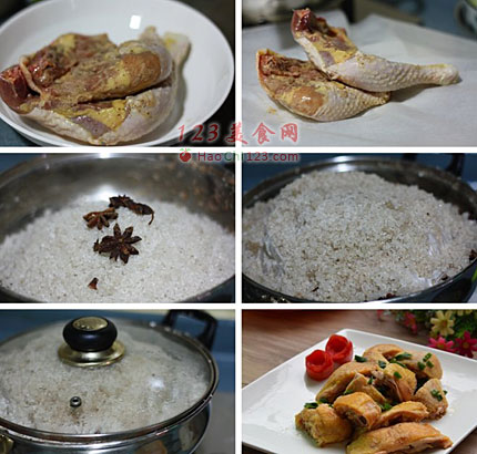 4、盐焗的时间要根据鸡的大小来定的,煮熟为原则喔,比如像盐焗鸡腿,鸡腿不大,20分钟足以,而整鸡时间要长。煮好后焖片刻再打开,让倍受盐煎熬的鸡缓缓神。[sushi.laoyanhuo.com]
