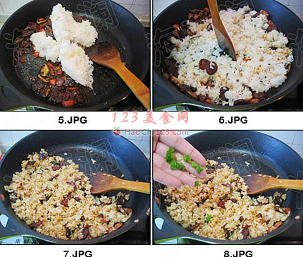 3、炒饭时将锅铲垂直的剁炒,很快就可将米饭炒开。[sushi.laoyanhuo.com]