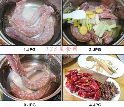 9、放入鸭脖子,开锅后转小火盖盖儿焖制30分钟。