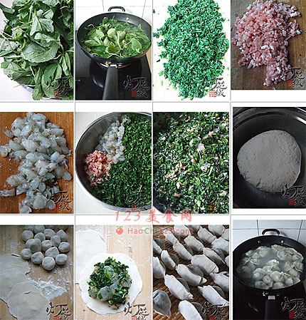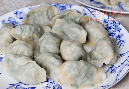 11、坐锅烧水,水开后,先用勺子把锅里的水沿同一方向搅动起来,然后依次下入饺子,盖上锅盖大火煮开,然后加点凉水继续盖盖煮,煮开后继续点凉水,如此三点三开后,马上关火,捞出装盘。