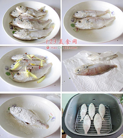 2、小黄鱼去腮去膛,冲洗干净后在鱼身划上2刀。