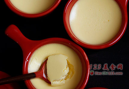 5、烘烤时间仅供参考,要根据烤碗的大小来调整,我的布丁烤了30分钟即可;烤布丁不能打开热风,要不表面会形成蜂窝状。