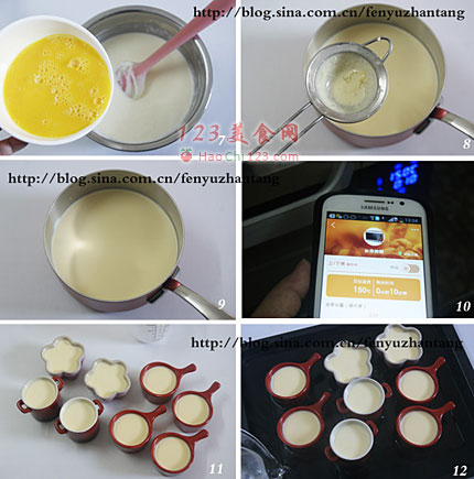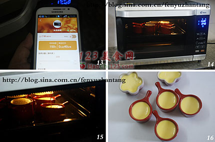 15、烤至布相插一根牙签进去,站住了就好了(烘烤时间仅供参考,要根据烤碗的大小来调整,我的布丁烤了30分钟即可),关掉烤好后不要急着拿出来,在烤箱里放一个小时之后拿出。