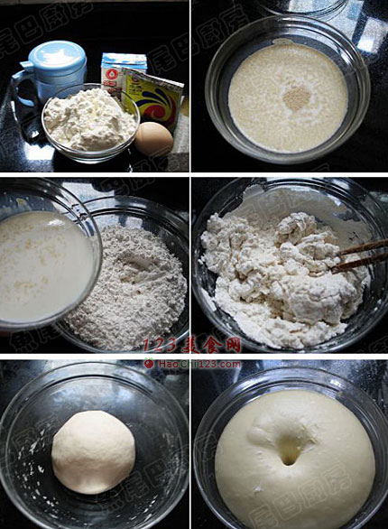 2、牛奶加热至38度左右,加入酵母,静止十分钟。