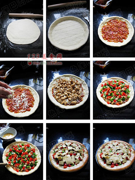三、组合披萨,烘烤: