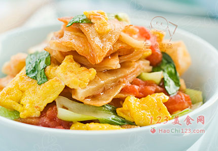 3、做烩饼的配菜你也可以随意更换,可以放点肉,也可以放尖椒什么的,但是西红柿不建议省略,有了它汤汁会比较浓郁。