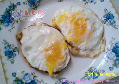 2、将鸡蛋放在锅里煎成蛋饼,煎的时候不能翻面,一定要保持鸡蛋向上的那面是水嫩的(如果蛋黄极不容易成熟的话可以用铲子将蛋黄稍稍弄破),煎好的蛋一定要带溏心,这样夹在汉堡内才会非常的好吃。