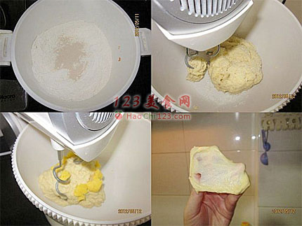 2、将面团放入涂了一点油的保鲜袋里面,扎好袋口,放温暖处发至2.5倍大。