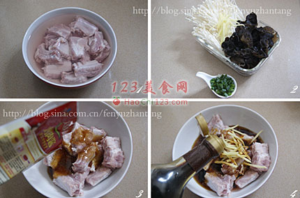 2、排骨洗净浸泡清水一小时可减少腥臊味。