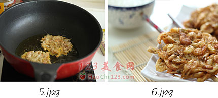 2、往锅里放虾的时候要尽量按压的薄一点,容易炸透。