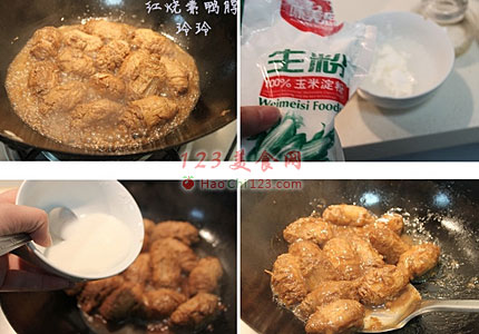 4、大火烧开,再调少许淀粉水倒入,收汁起锅。