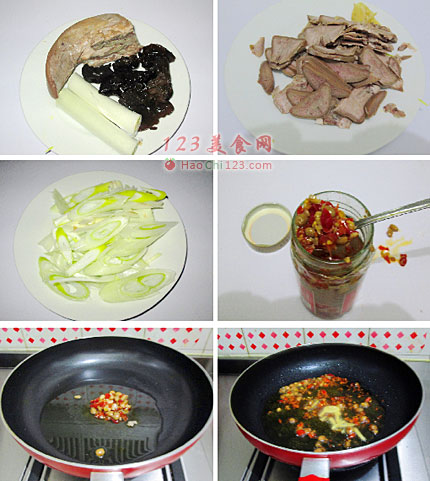 1、口条我用的是卤熟的。木耳要提前泡发,加入葱以后要快速翻炒,以免炒老。