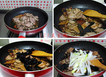 9、加入水分木耳,继续煸炒。
