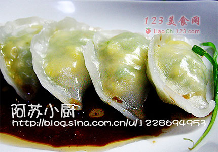8、放入馅捏成饺子状。