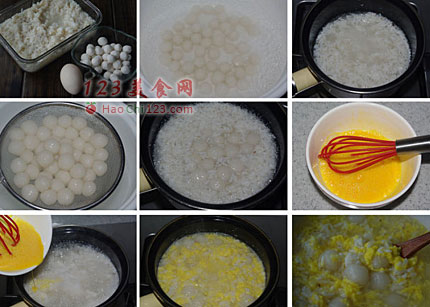 3、煮好的小丸子捞出放入甜酒中再煮一分钟。