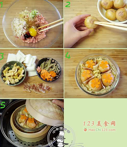 1、肉馅里选用的肉最好是肥瘦相见的,加入适量的马蹄碎(莲藕)口感会更好。