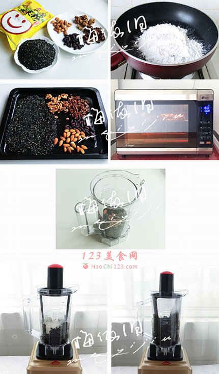 4、烤好的食材放入搅拌机中,研磨成细腻的粉末。