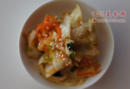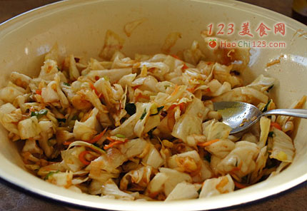 贴士:吃饭的时候夹一点,开胃!煮汤的时候也可以加一点,炒菜也可以放一些,包饺子也很不错。总之,泡菜在厨房的用武之地很大。[sushi.laoyanhuo.com]