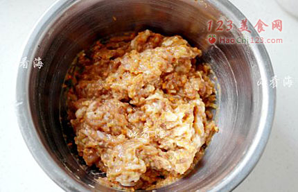 3、将肉馅顺一个方向搅打成上劲有弹性状。