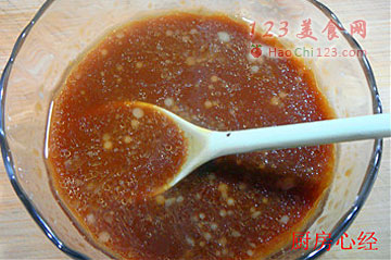 10、提前调制好一个碗汁:耗油、白糖、盐、酱油、料酒、香油、淀粉。