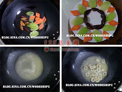 4、放高汤,米酒,鸡精和盐烧开后,加龙眼肉和胡萝卜熟透后,捞出摆盘,将多出来的汤水淋在菜肴上即可。