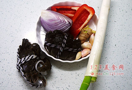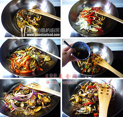 4、加入的酱汁可以根据自己的口味灵活调整,喜辣可以加入辣酱或将红椒换成更辣的小红椒。海鲜酱也可以用豆豉酱或虾酱、牛肉酱等代替。