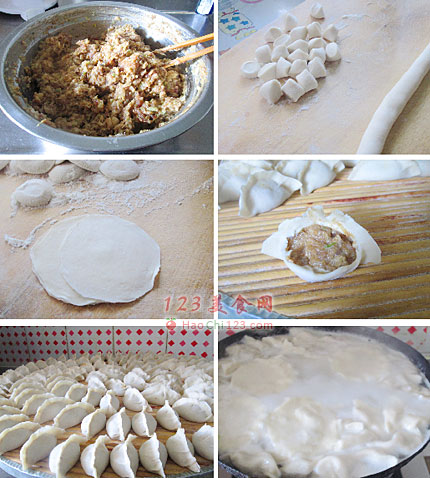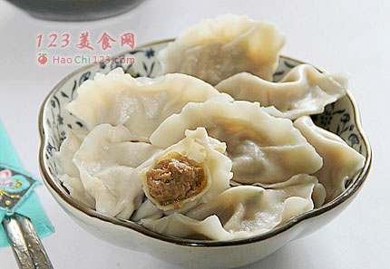 18、锅中注入水,烧开下入饺子,煮至浮起时,反复点水两次即可捞出食用。
