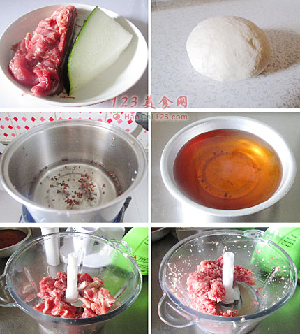 8、冬瓜去皮,切成块放入绞肉机中。