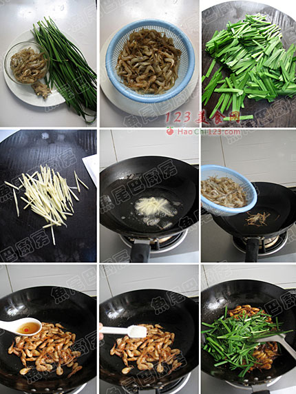 3、韭菜炒至断生就可以,炒久了,韭菜会老和出水。