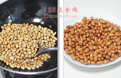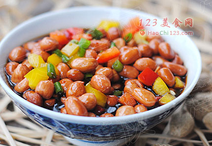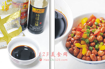 2、调味汁浇上后过一两小时,待调味汁浸入花生内再吃会更可口。