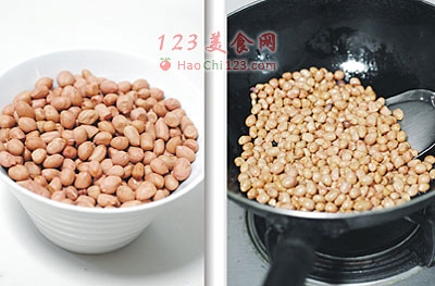 3、炸花生米时,不要把油烧热再炒花生米,那样容易使花生米外焦内生。最好的方法是同时放油和花生米,等油烧热后,花生米也就炸好了。